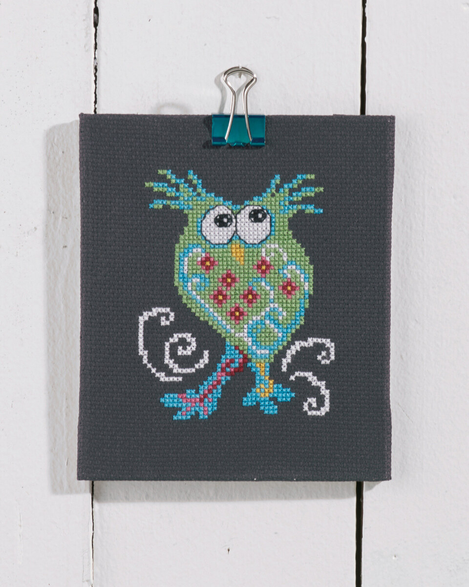 Embroidery Kit Green owl 11 x 13 cm / 4 x 5 in