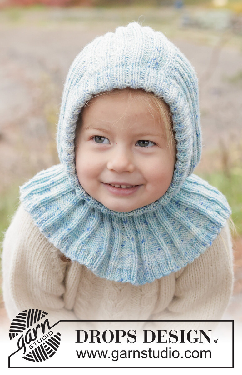 Knitted hoodie hat/balaclava for children in DROPS BabyMerino. Piece is knitted bottom up in rib. Size 2 - 14 years