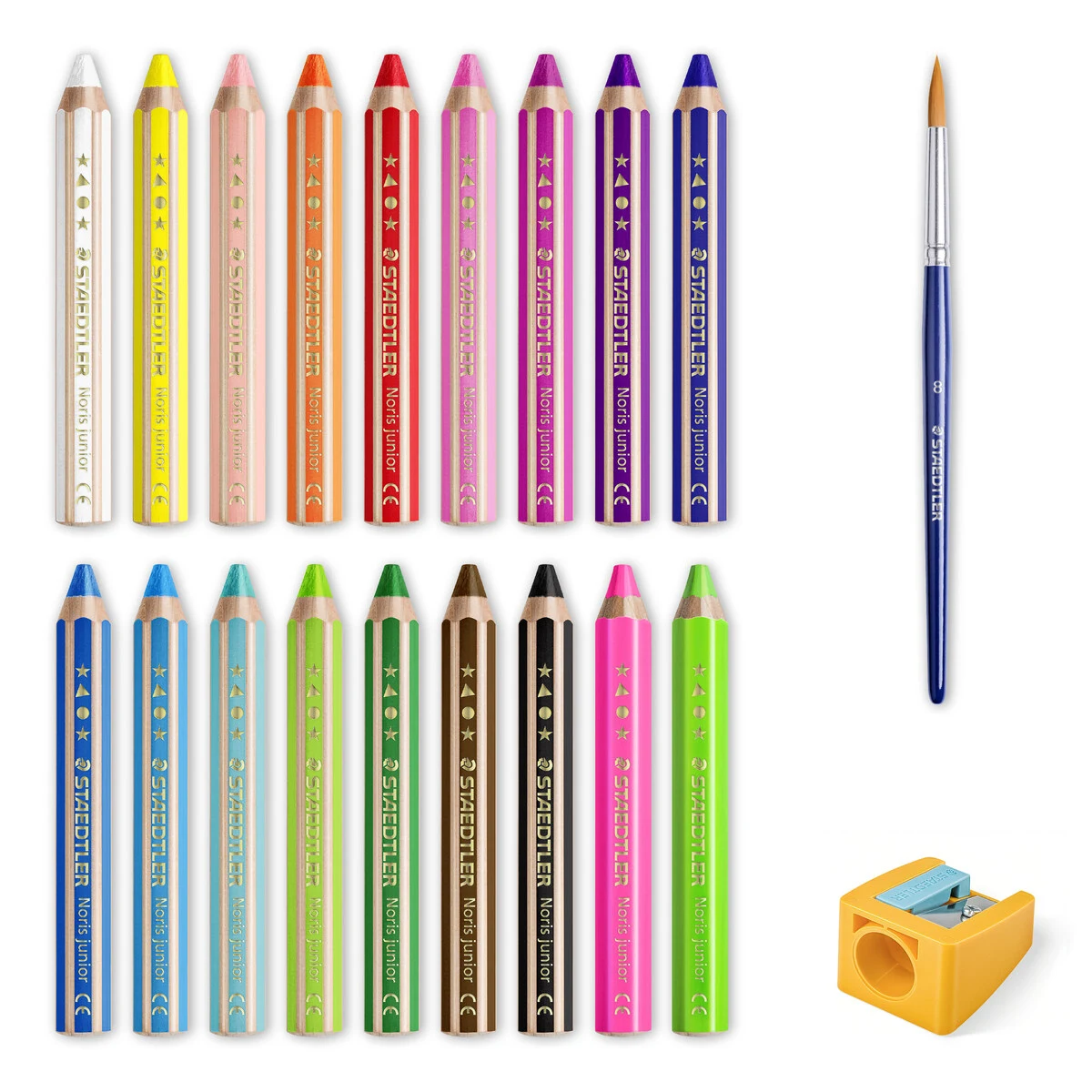 Staedtler Noris Junior 140 is a brilliant “first coloured pencil” for children who want to draw, colour and experiment with colour. You get a clever 3-in-1 solution where each pencil works as a coloured pencil, a wax crayon and a watercolour pencil. The chunky size is easy to hold for small hands from age 2+, and the hexagonal shape means the pencils are less likely to roll off the table.