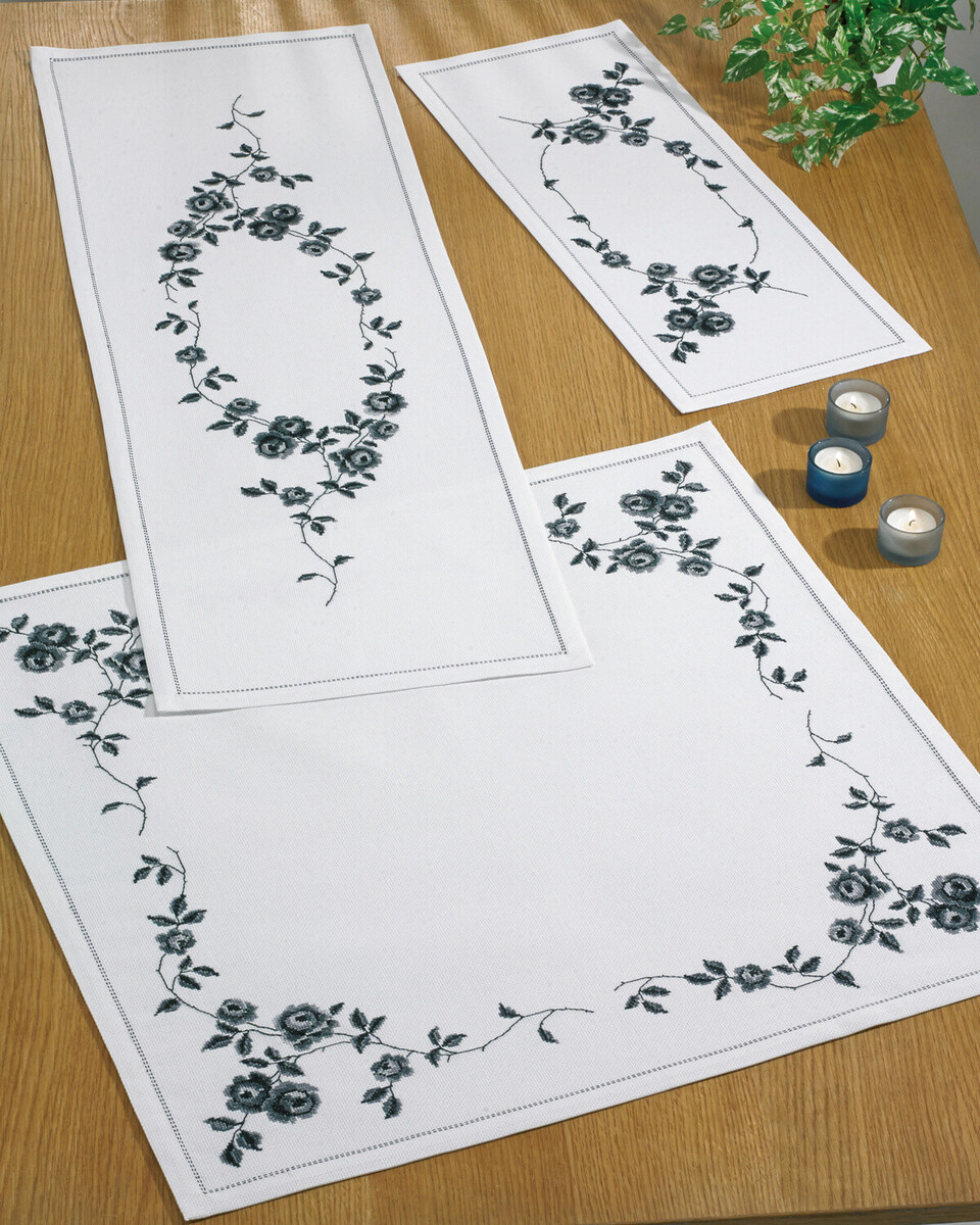 Embroidery Kit Climbing Roses in Gray 66 x 66 cm / 26 x 26 in