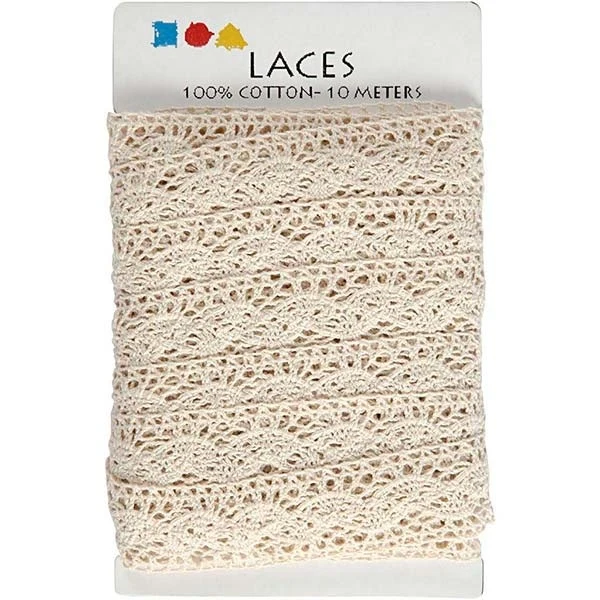 Update your knitted and crochet creations with a touch of rustic elegance. Our blonde laces add a touch of flirty personality to your handmade dresses, hats, innerwear and garments. Made with 100% cotton, these laces feature an intricate pattern for that boho appeal. The rugged crocheted laces can be stitched directly on the fabric of your choice. Available in off-white and plain white colours, the laces will elevate any creation effortlessly, adding depth and a multi-textured appeal to them.
