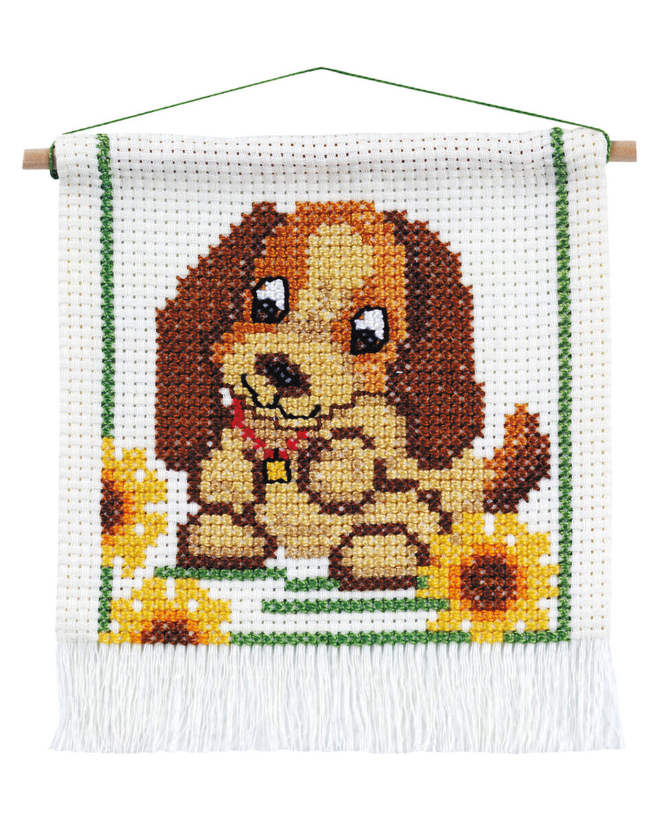 Embark on a delightful stitching adventure with the Embroidery Kit MFK Dog, sized 16x18 cm (6x7 in). This charming kit features a playful canine motif, expertly designed to bring joy and a touch of whimsy to your crafting collection. With its warm ivory background and a palette of 12 beautiful colors, this embroidery kit promises both relaxation and satisfaction in every stitch.