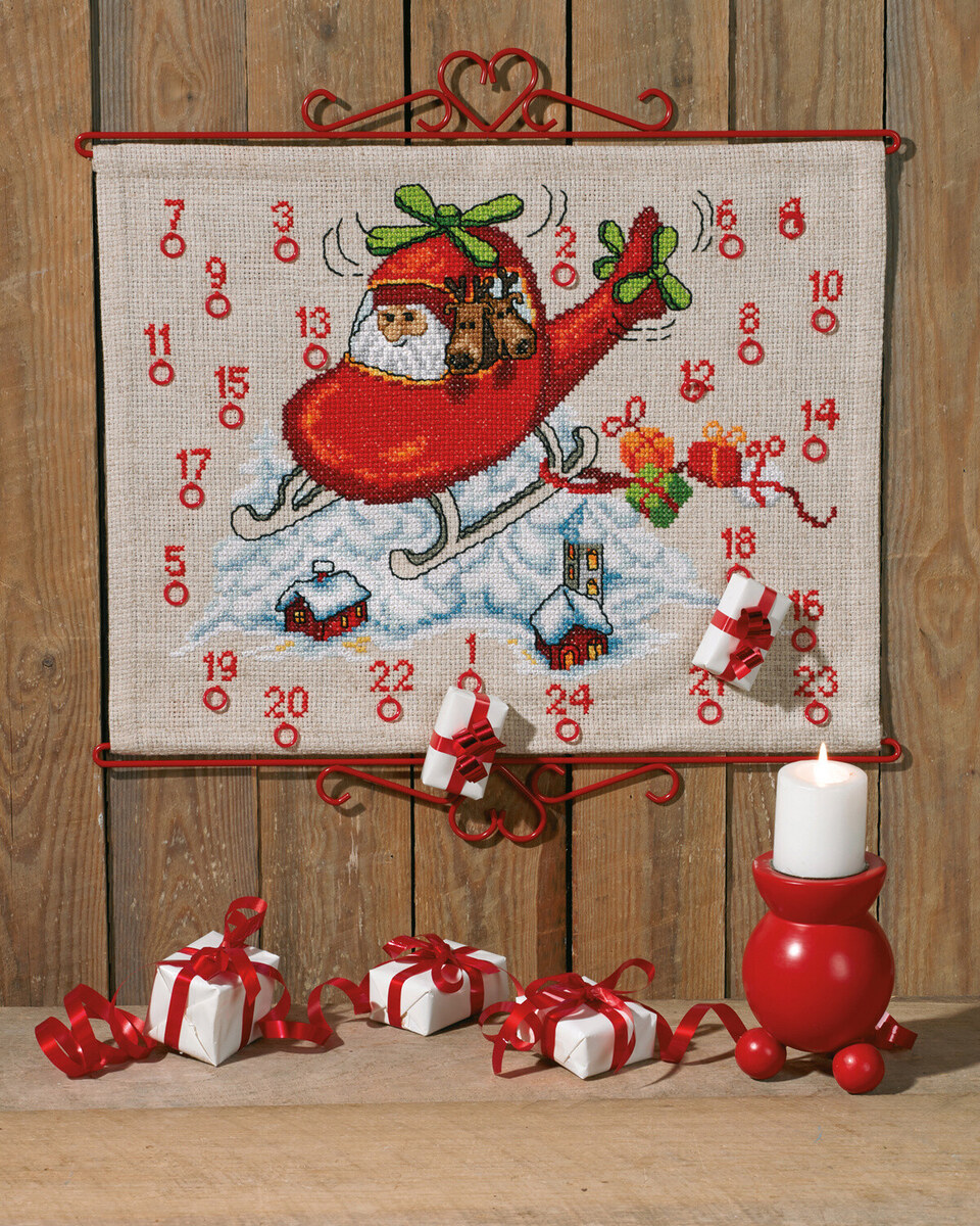 Embroidery Kit Santa Claus in helicopter 50 x 38 cm / 19.69 x 14.96 in