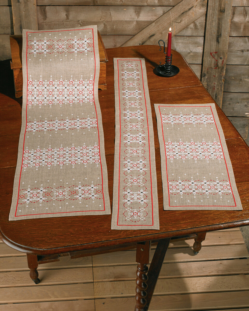 Discover the timeless beauty of hand embroidery with our Embroidery Kit Borders on linen 28 x 77 cm / 11 x 30 in. This exquisite kit features a charming linear border design, elegantly presented on high-quality linen. With its intricate patterns and inviting palette, this kit promises not only a rewarding crafting experience but also a stunning decorative piece upon completion.