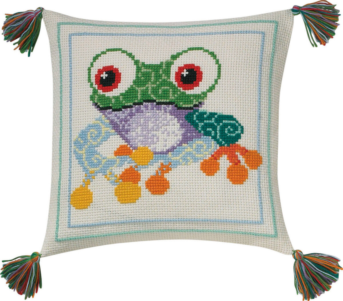 Embroidery Kit Children's Cushion Frog 30x30 cm / 11.81x11.81 in