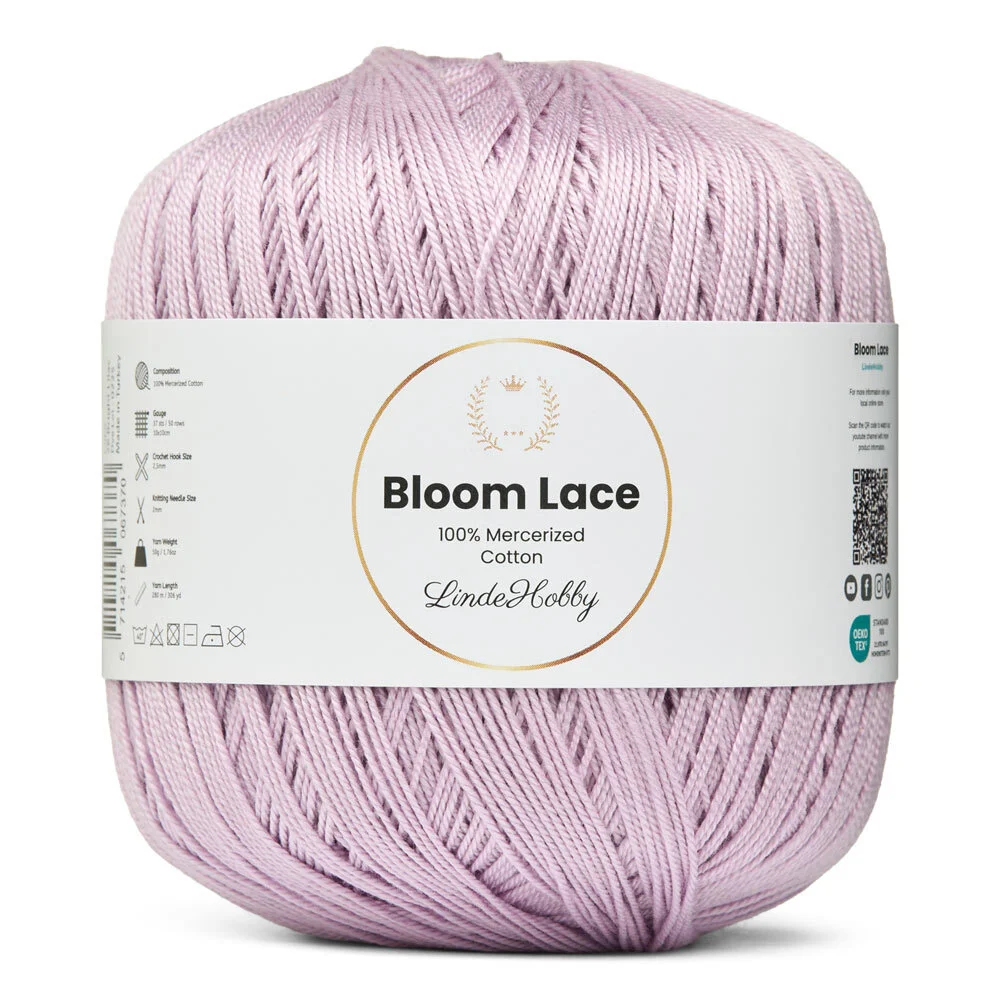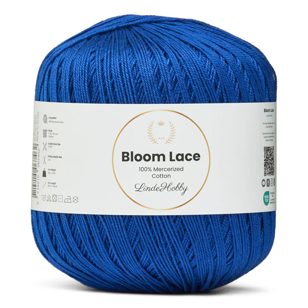 LindeHobby Bloom Lace is a luxurious lace yarn made from 100% mercerized cotton. It features a beautiful, glossy surface and a dense, smooth texture that gives your finished projects a refined and exclusive look. This fine and delicate yarn is perfect for creations that require precision and an elegant finish.