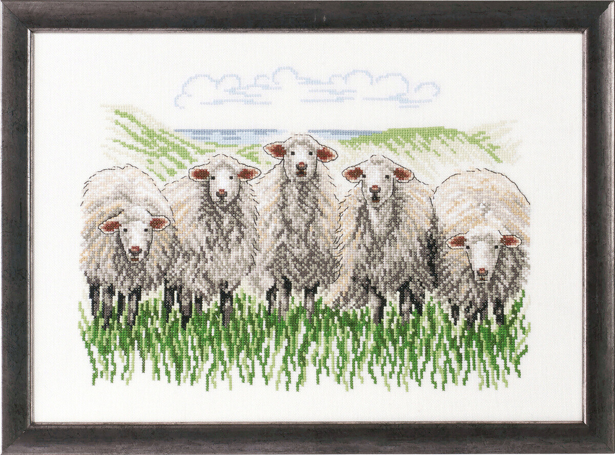 • Featuring a captivating design that uses cross stitch and backstitch techniques, adding depth and detailed shading to the field and sheep.