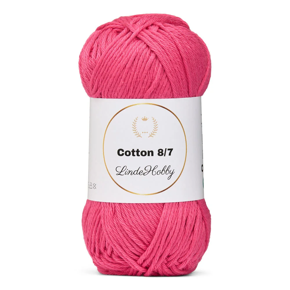 LindeHobby Cotton 8/7 is a classic 100% cotton yarn with a length of approx 90 metres per 50 g. The yarn has a firm and even strand structure, making it easy and comfortable to work with – whether you knit or crochet. It is a popular choice among both beginners and experienced crafters, and is available in a wide range of beautiful colours.